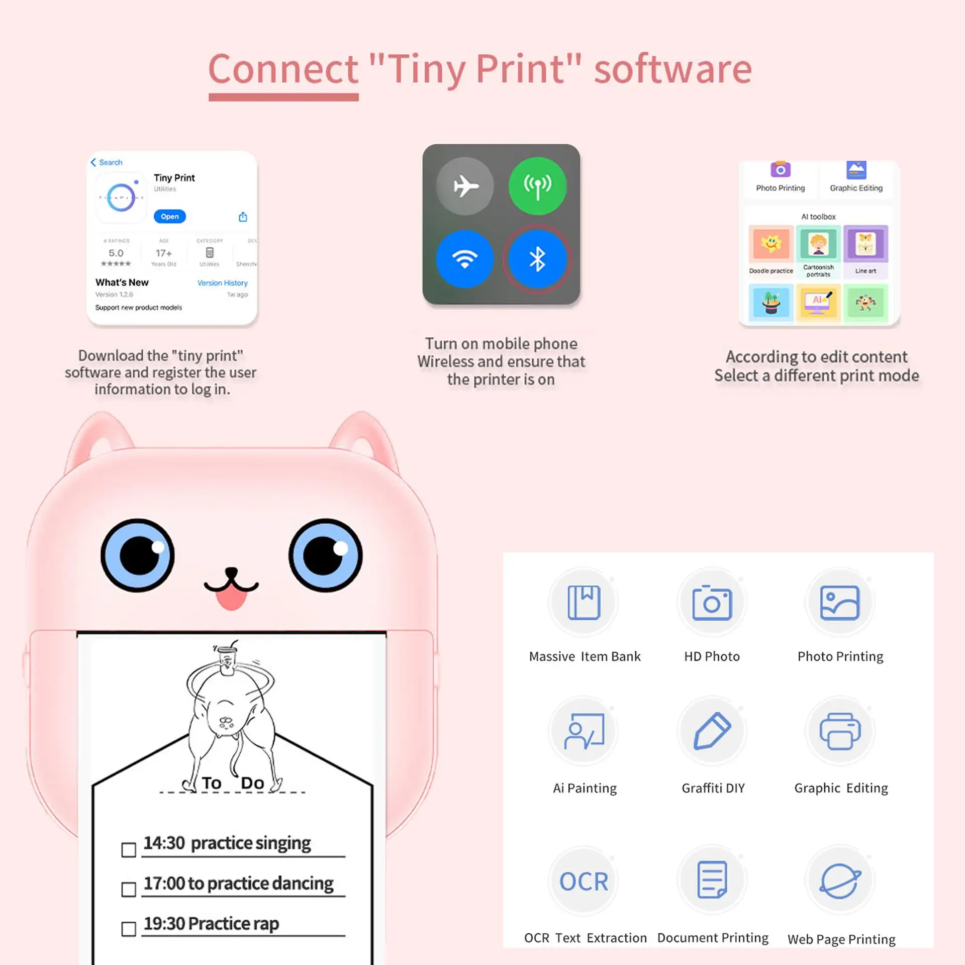 • Portable Design :The mini printer is small and lightweight, making it easy to carry around and use on-the-go.