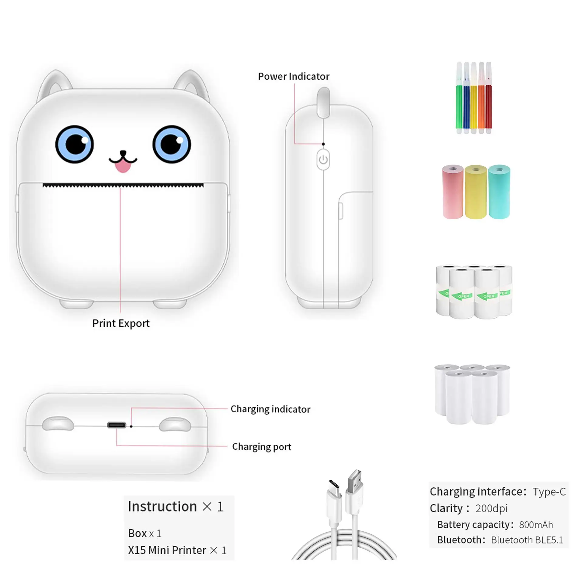 Shipping list: host+charging cable+manual+1 roll of printing paper
